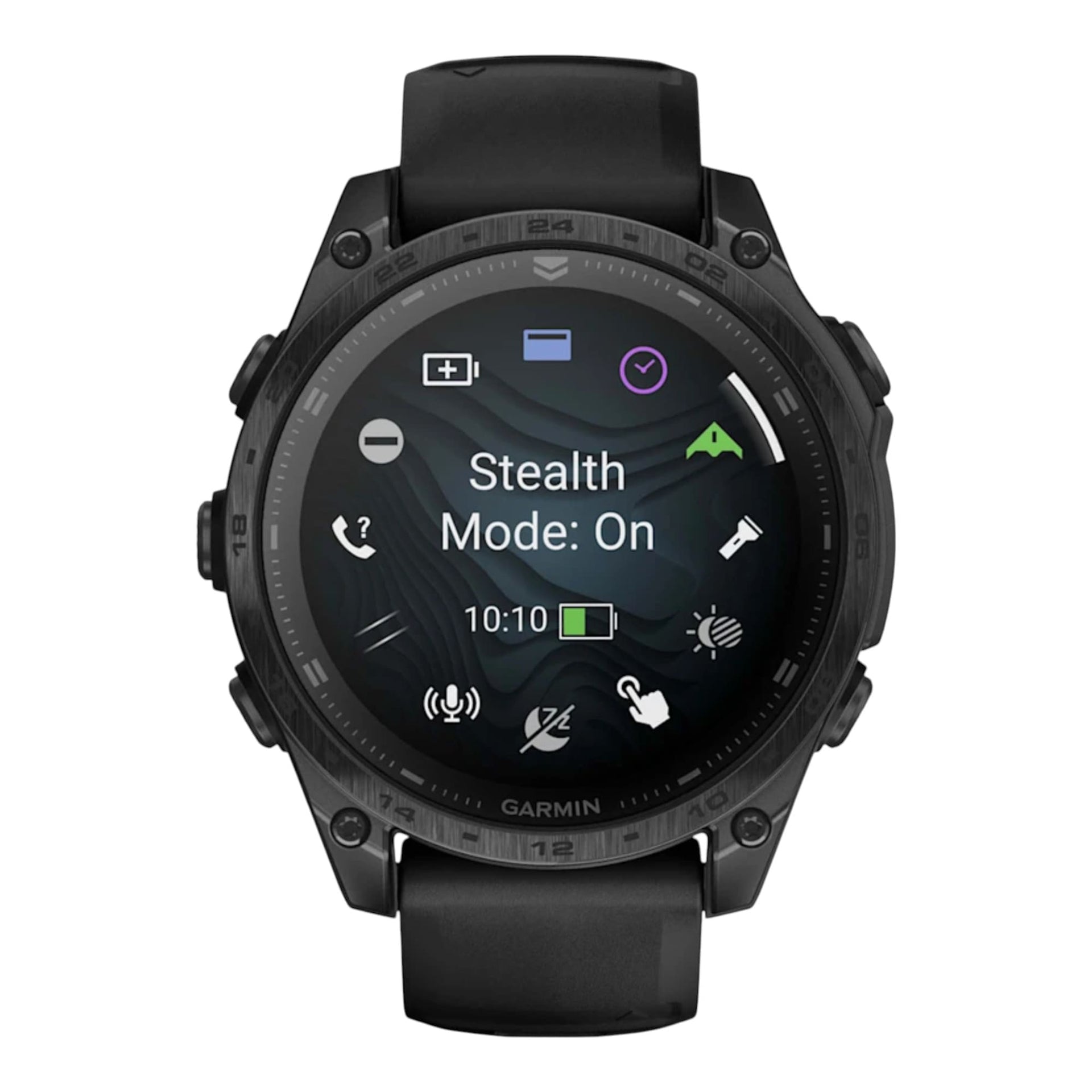 • Écran : AMOLED haute définition ultra lumineux de 1,4’’. • Autonomie : Jusqu’à 16 jours en mode montre connectée. • Design : Lunette en titane, verre en cristal de saphir, conforme aux normes militaires en matière de résistance à la chaleur, aux chocs et à l’eau. • Fonctions Tactiques : Jumpmaster, projection de waypoints, double format de coordonnées GPS, mode furtif, fonction Arrêt d’urgence, compatibilité avec lunettes de vision nocturne, profil d’activité spécifique pour le rucking. • Navigation : GPS multi-bandes avec technologie SatIQ™, capteurs intégrés (compas électronique 3 axes, gyroscope, altimètre barométrique). • Applied Ballistics : Accès à des solutions de visée pour le tir longue distance. • Plongée : Étanchéité jusqu’à 100 mètres, fonctions de plongée en apnée et en bouteille jusqu’à 40m. • Lampe Torche : LED intégrée, multicolore, avec faisceau lumineux vert ou blanc et mode vision nocturne. • Haut-parleur et Micro : Appels téléphoniques, commandes vocales, et messagerie. • Cartes : Outdoor Maps+, cartes TopoActive multi-continents, cartes Skiview™ pour plus de 2 000 stations de ski, cartes CourseView pour plus de 43 000 parcours de golf. • Performances : Plans d’entraînement ciblés, score d’endurance, prédicteur de course, technologie PacePro™, fonction ClimbPro, allure ajustée à la pente, score de préparation à l’entraînement, statut d’entraînement, métriques de performance, transition automatique entre les sports, score de montée, suggestions quotidiennes d’entraînement, aide à la récupération, widget de course, dynamiques de course au poignet, Garmin Coach. • Activités et Fonctions : Profils d’activité préchargés, entraînements HIIT, exercices animés, ski et snowboard hors-piste, puissance de glisse en ski de fond, MTB Dynamics. • Santé : Rapport matinal personnalisable, statut VFC, fréquence cardiaque au poignet, application Garmin ECG, oxymètre de pouls, coach de sommeil, variations respiratoires, détection de sieste, conseils sur le décalage horaire, suivi d’énergie Body Battery™, suivi du stress, Health Snapshot™, suivi de la respiration, suivi de l’hydratation, altitude et acclimatation thermique. • Fonctions Connectées : Haut-parleur et micro intégrés, Garmin Connect, application Garmin Messenger™, notifications intelligentes, musique intégrée, paiements sans contact avec Garmin Pay™, partage Garmin, fonctions de suivi et de sécurité, suivi de 50 actions préférées, boutique Connect IQ™, gestionnaire d’alimentation.